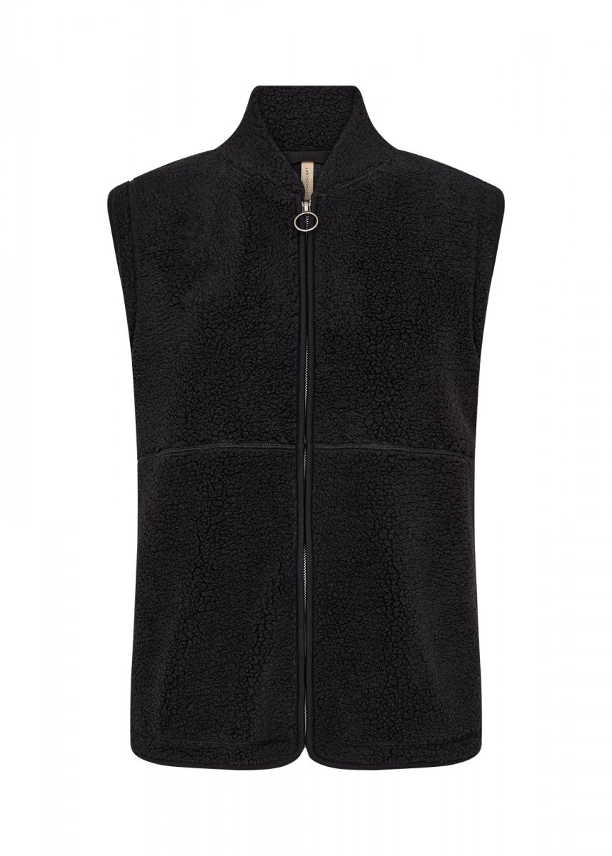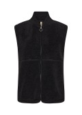 Cool vest fremstillet af 100% genanvendt polyester. Vesten har en høj halsudskæring, en løs pasform, lynlåslukning og et teddy-materiale.