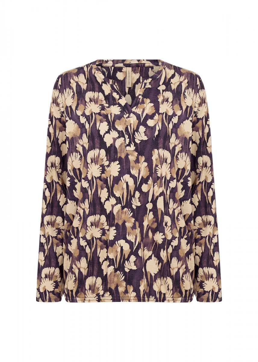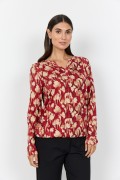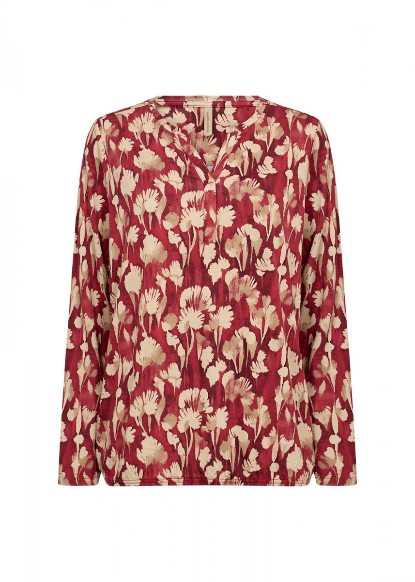 Bluse fremstillet af 50 % økologisk bomuld og 50 % viskose. Denne elegante bluse har V-udskæring, lange ærmer og et gennemgående blomsterprint. Sæt den sammen med dine yndlingsjeans eller en nederdel for et unikt og stilfuldt look.