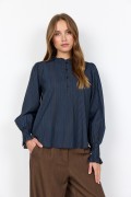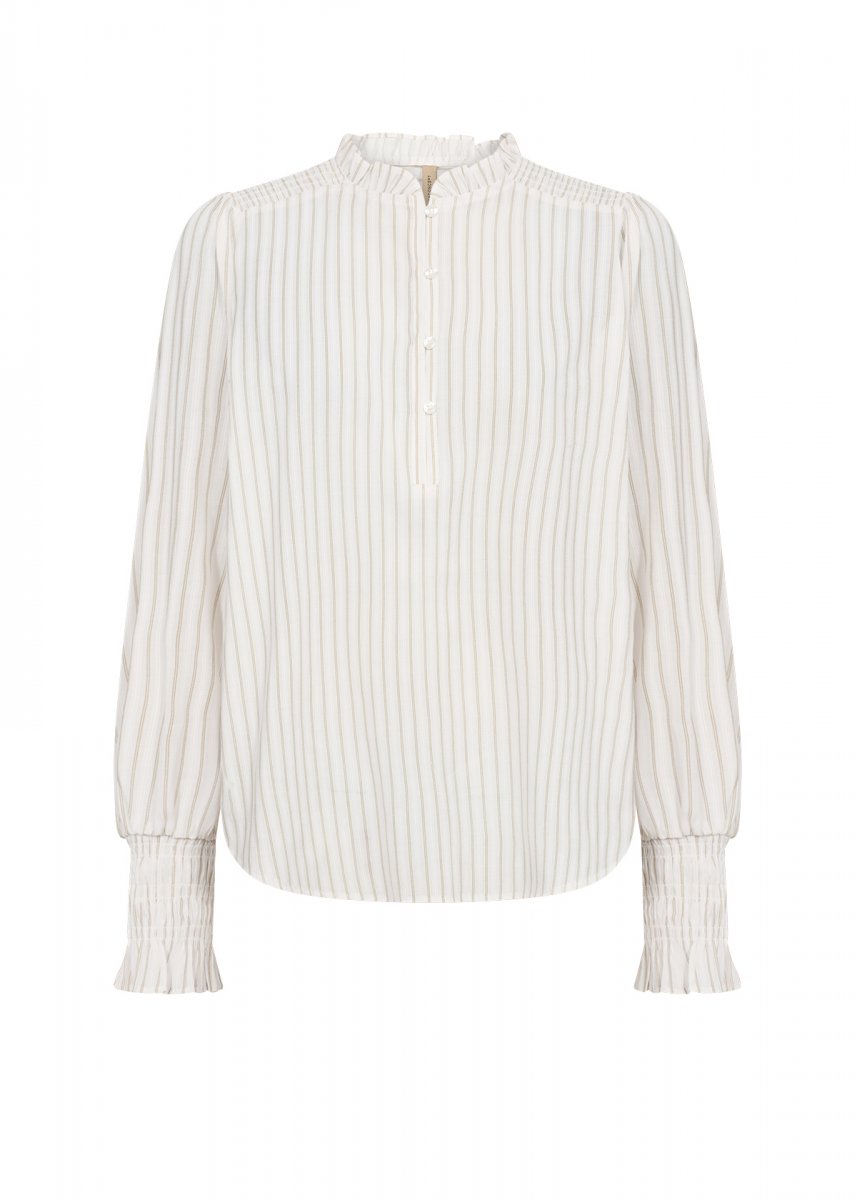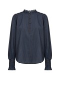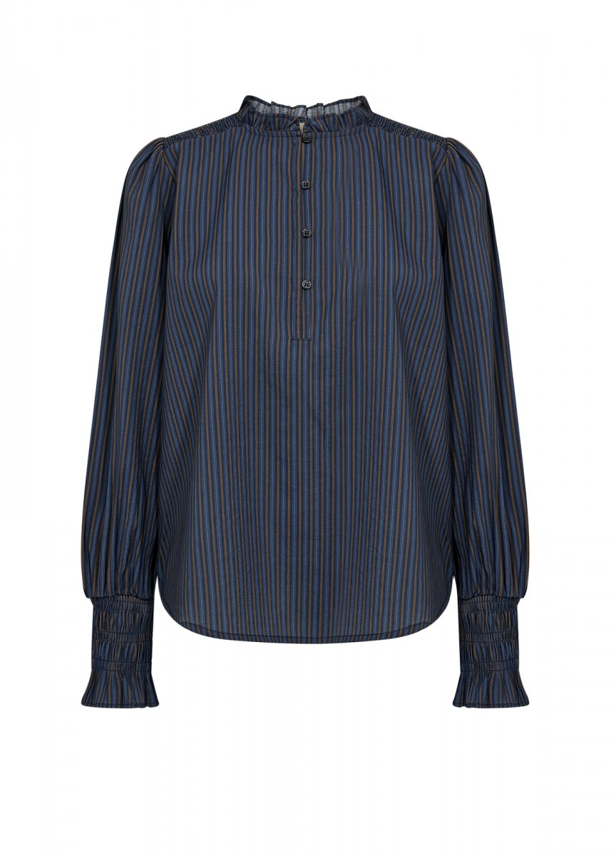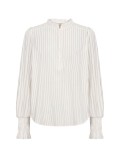 Bluse fremstillet af 80% LENZING™ ECOVERO™ viskose og 20% polyester. Den har en fin flæsekrave, knaplukning, lange ærmer med smockmanchetter og en diskret stribet tekstur.