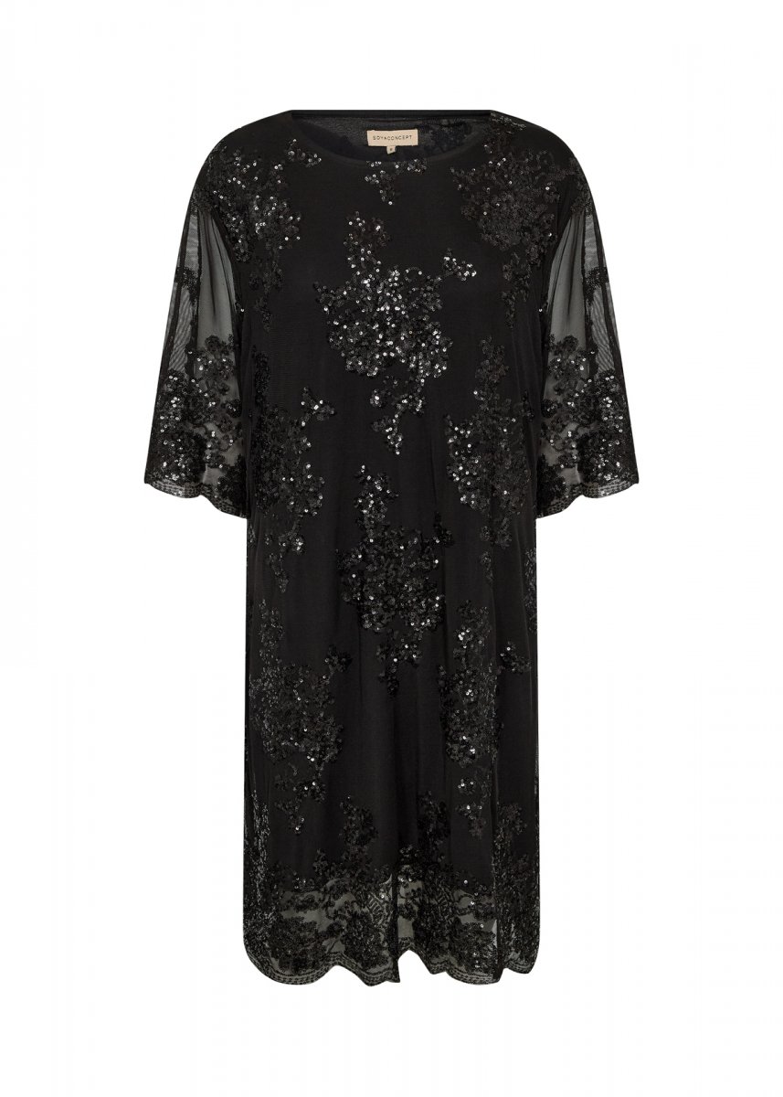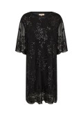 Elegant kjole med paillet- og blondedetaljer over gennemsigtigt stof, en rund halsudskæring og mellemlange ærmer. Sæt den sammen med statement-øreringe og klassiske hæle for et unikt aftenlook.